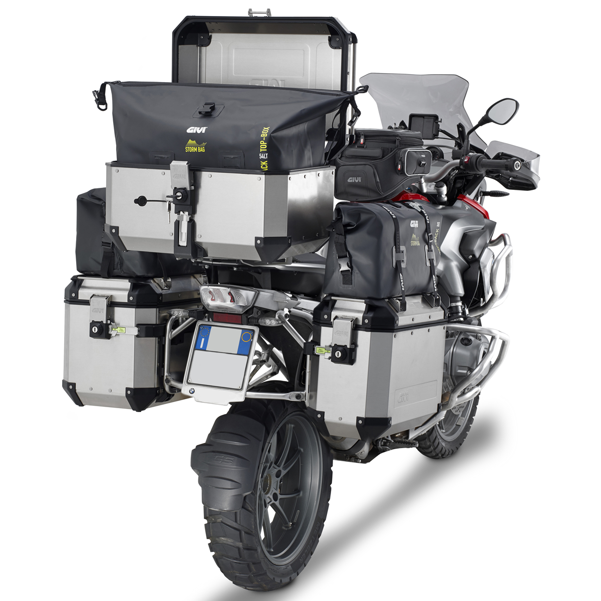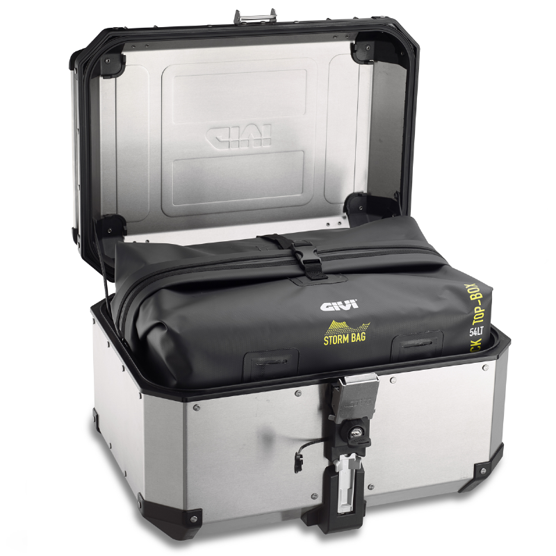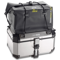 Bolsa Givi T512. Bolsa interna waterproof para maleta Trekker Outback 58 litros. Está realizada en PVC Tarpaulin 500D, soldada a alta frecuencia, sin costuras. Todo el producto está fabricado según la normativa Reach. Puede ser utilizada también sobre la tapa de la maleta, o como bolsa de sillín fijándola con los elásticos en dotación o con las correas opcionales S350 Trekker Straps. Capacidad: 54 litros Dimensiones: 510 mm (ancho) x 370 mm (profundo) x 240 mm (alto).