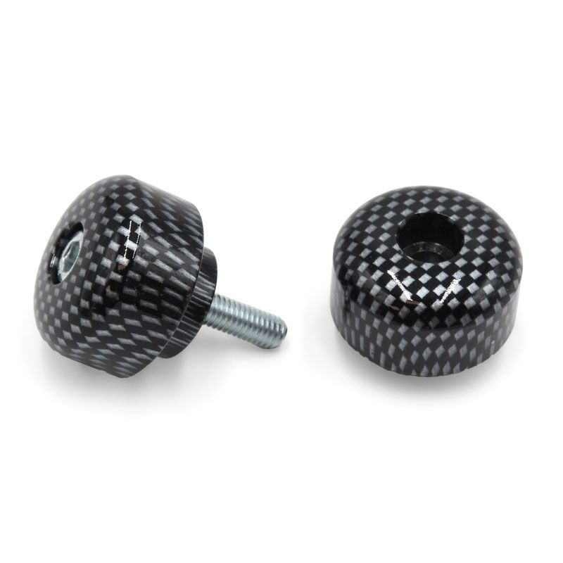 Contrapeso manillar Vicma 908CF. Contrapesos de manillar V-Parts (antes Vicma 908) – Diseño, calidad y fácil montaje. Los contrapesos de manillar V-Parts (antiguamente Vicma 908) están fabricados en aluminio de alta calidad, con un diseño innovador que mejora tanto la estética como la funcionalidad de la moto. Gracias a su fabricación precisa y el uso de materiales resistentes, ayudan a reducir las vibraciones transmitidas al manillar, ofreciendo una conducción más cómoda y segura. El montaje es muy sencillo, ya que el kit incluye los tornillos M6 x 25 mm necesarios para su instalación. El precio corresponde al juego completo de 2 unidades.