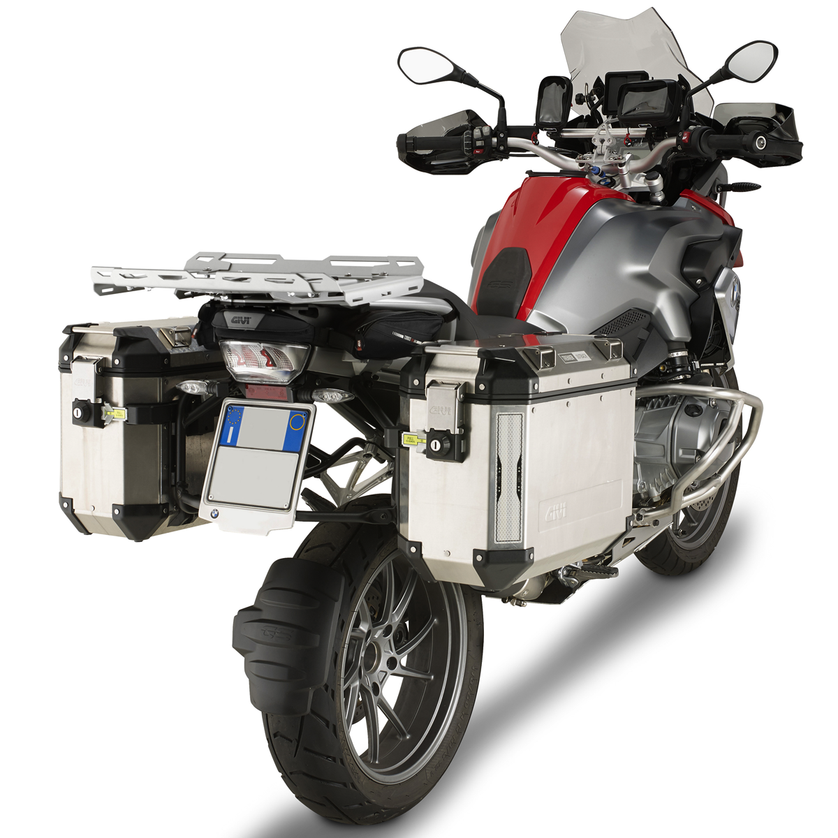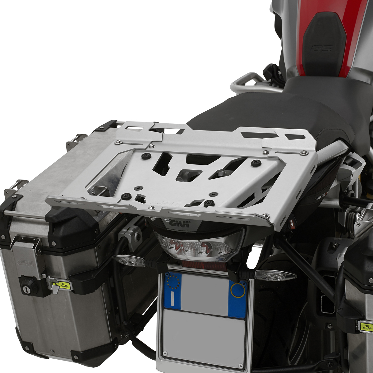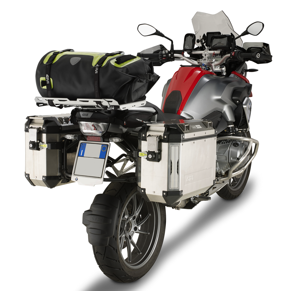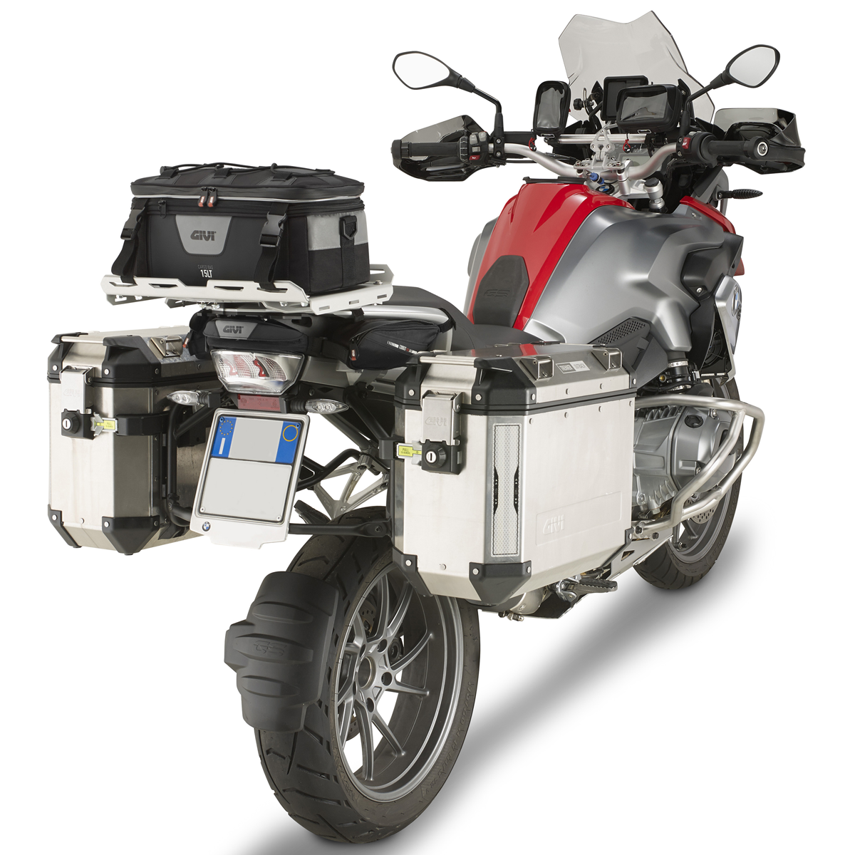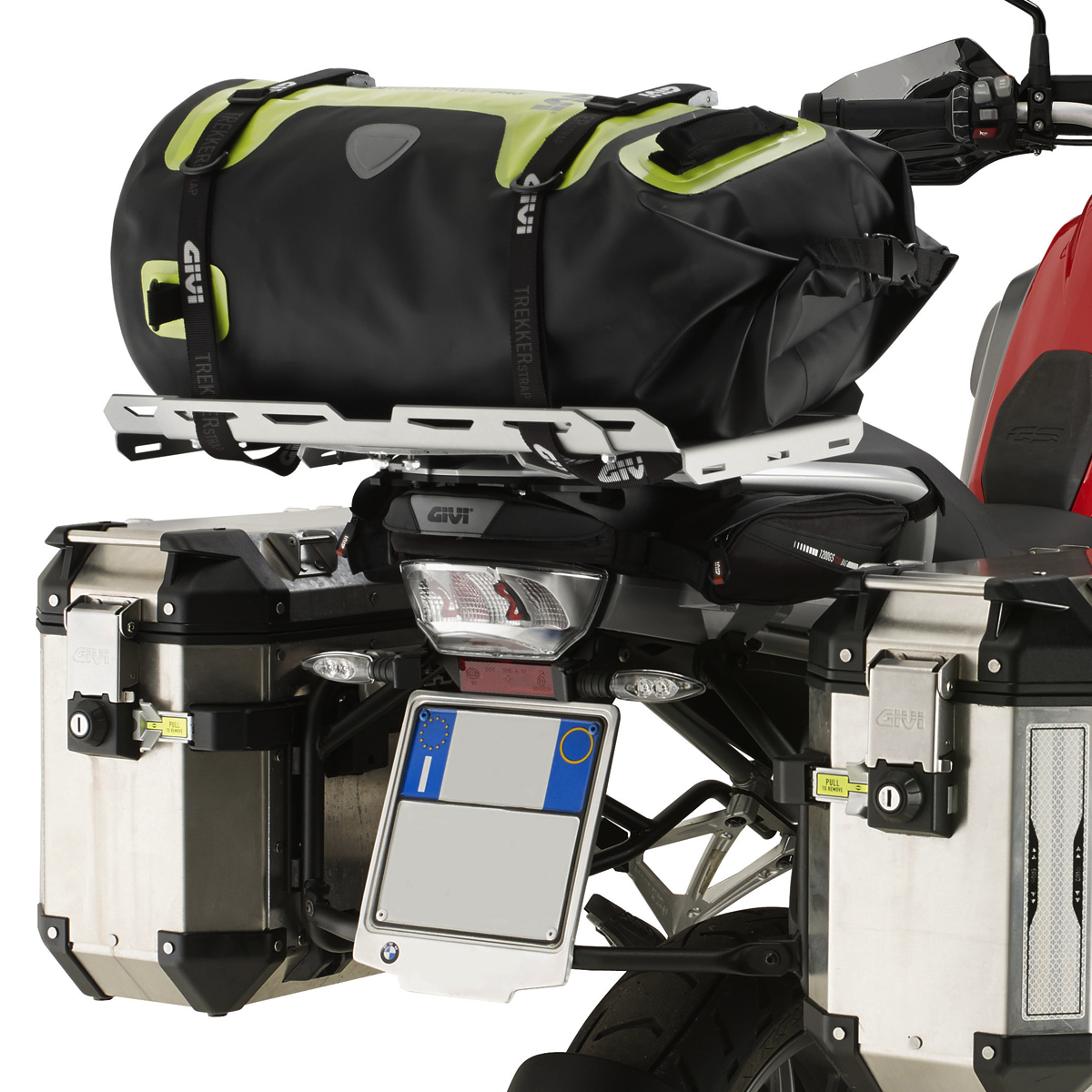 Portabolsa extensible Givi EX1SRA. Portabolsa extensible en aluminio para montar sobre el adaptador posterior SRA_ _ . Ancho de 413 a 513 mm. Adaptada para el transporte de Bolsas rulo de 30 a 50 litros. Carga máxima 6 kg.