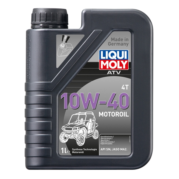 Aceite Liqui Moly ATV 4T Motoroil 10W-40 1 Litro. Liqui Moly ATV 4T Motoroil es un lubricante de motor de alto rendimiento basado en tecnología sintética. Especialmente desarrollado para motores de 4 tiempos con refrigeración de aire y agua sometidos a condiciones de uso extremas en el uso todoterreno. Apto para vehículos todoterreno, quads y SxS (side by side) con y sin embrague de baño en aceite.