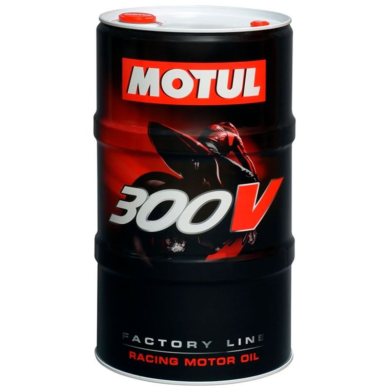 Aceite Motor Motul 300V 4T 10/40W Ester Core 60 Litros Factory Line Road Racing. Motul 300V 10/40W es un aceite 100 % sintético destinado para motores de 4 tiempos en motos de competición. Motul 300V cuenta con la tecnología Ester Core que ofrece un "muy bajo" coeficiente de fricción al motor y por tanto una mejora del rendiemiento superior al 1.3% de la moto. Motul 300V se comporta extraodinariamente en altas temperaturas y es utilizado en las carreras de MotoGP, SuperSport, SuperBike, etc.