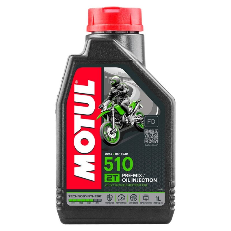 Motul 510 2T es un efectivo lubricante de moto que rinde perfectamente incluso a altas velocidades y bajo cargas térmicas extremas, minimizando las pérdidas por fricción y brindando una alta protección contra el desgaste.