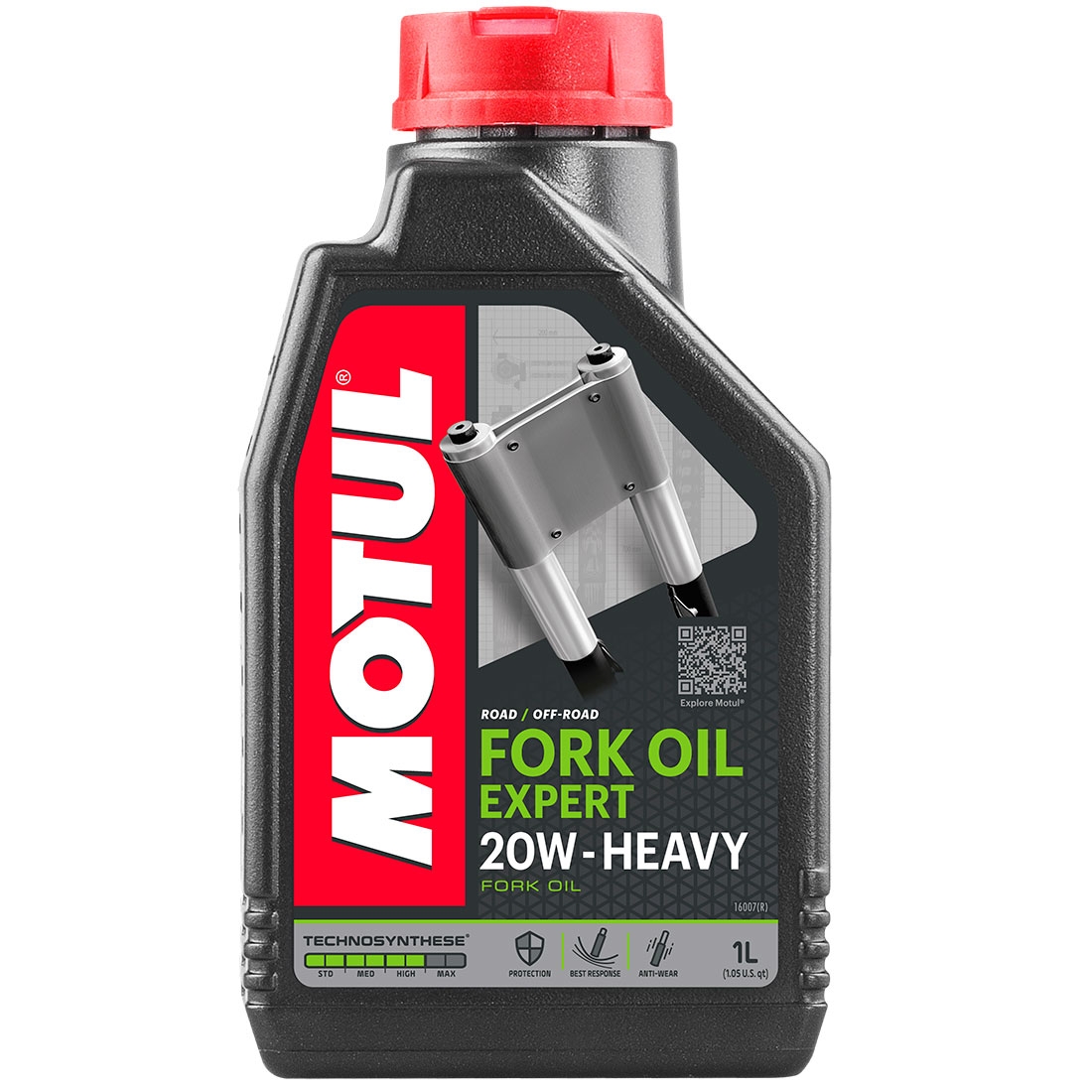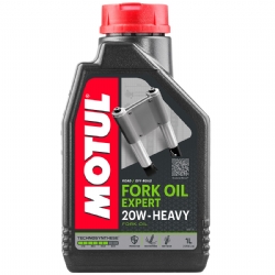 Aceite Suspensión Motul Fork Oil Expert 20W Heavy 1 Litro. Aceite hidráulico SAE 20W Technosynthese diseñado para motos con horquillas telescópicas invertidas o convencionales. Motul Fork Oil Expert ofrece muy buena estabilidad para mantener las prestaciones durante su perirodo de uso. Excelente reducción de la fricción gracias a los aditivos antifricción desarrollados por Motul en exclusiva. Propiedasdes antiespumantes mejoradas para evitar la transferencia de aire o perdida de gas.