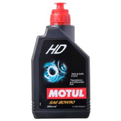 Aceite transmisión Motul Transmission HD 80W90 1 Litro. Motul Transmission HD 80W90 es un aceite mineral multigrado de extrema presión que se puede aplicar en todas las cajas de cambio de marchas y diferenciales (sincronizados o no) de motos, coches o camiones. Motul HD 80W90 ofrece una alto índice de lubricación para reducir la fricción en el motor, gracias a su elevada viscosidad en caliente. Se mantiene en el grado 90 después de la prueba de cizallamiento KRL de 20 horas, tal como exige la norma SAE J306.