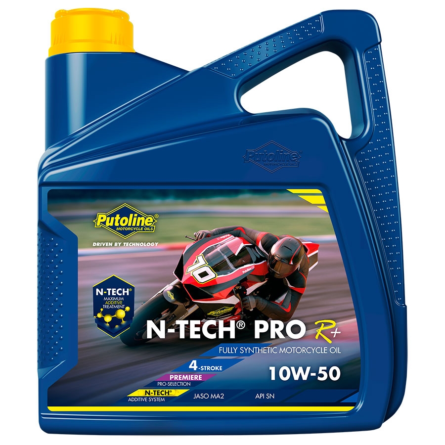Aceite Putoline N-Tech Pro R+ 10W-50 4 Litros. Putoline N-Tech Pro R 10W-50 4 Litros es el aceite de motor completamente sintético para motores de 4 tiempos más avanzado de Putoline Oil. Cuenta con el exclusivo sistema de aditivos N-TECH.
