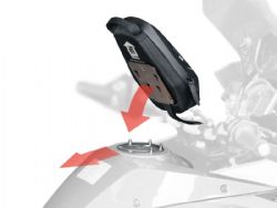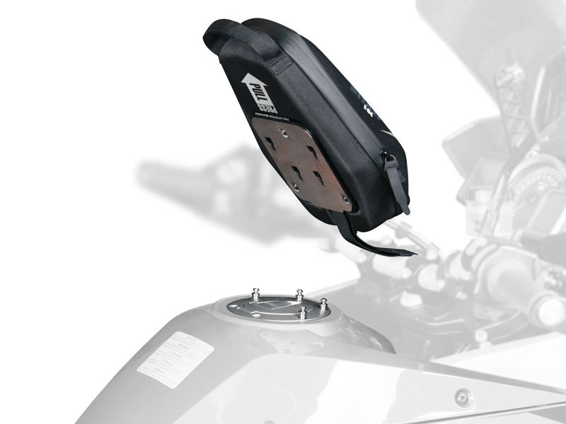 Este pionero sistema permite que la bolsa de tanque se coloque en la motocicleta de una manera simple y segura, además de rápida y fácil, montándola y desmontándola en tan solo 3 segundos. Con este nuevo sistema nos olvidamos de correas, imanes, bases, etc….con la ventaja que una vez extraída la bolsa del depósito, el sistema que queda visible en la moto, es mínimo, 3 o 4 pins (dependiendo del modelo de moto), simples y estéticos. Al aprovechar los orificios del depósito de la moto, nos olvidamos de anillos imantados, arandelas plásticas, sistemas actuales de anclajes rápidos de bolsas, que una vez extraída la bolsa, rompía la estética y estilo del vehículo, ya que el sistema quedaba sobre la moto. Con el nuevo sistema Pin System, la bolsa está completamente integrada, ya que el dispositivo de fijación está en la bolsa, no en la motocicleta, así que una vez extraída, no afecta en lo más mínimo la estética inicial del vehículo.