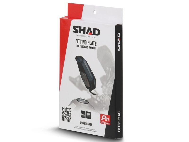 Adaptador Shad KW1 X014PS Pin System. Nueva fijación Shad Pin System Shad KW1 X014PS, diseñado para un rápido de anclaje de las bolsas de depósito Shad E-04P, E-10P y E-16P. La invisibilidad, agilidad, seguridad y la integración con la estética de la motocicleta, es la solución innovadora de Shad para aplicar las bolsa sobre deposito. La imagen es genérica.