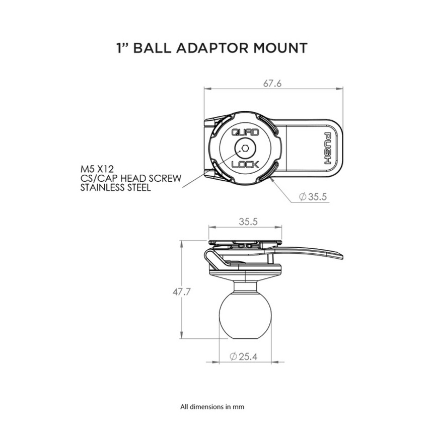Adaptador de bola de 1 Soporte de bicicleta RAM Quad Lock QLM-BAL-2. Adaptador de Bola de 1" para Soporte de Bicicleta RAM Quad Lock QLM-BAL-2: Integración Perfecta y Seguridad Avanzada. Integra sin esfuerzo el sistema Quad Lock® en tu soporte RAM existente con el adaptador de bola de 1" de Quad Lock®, una solución ingeniosa que combina la robustez de Quad Lock con la versatilidad de los soportes RAM.