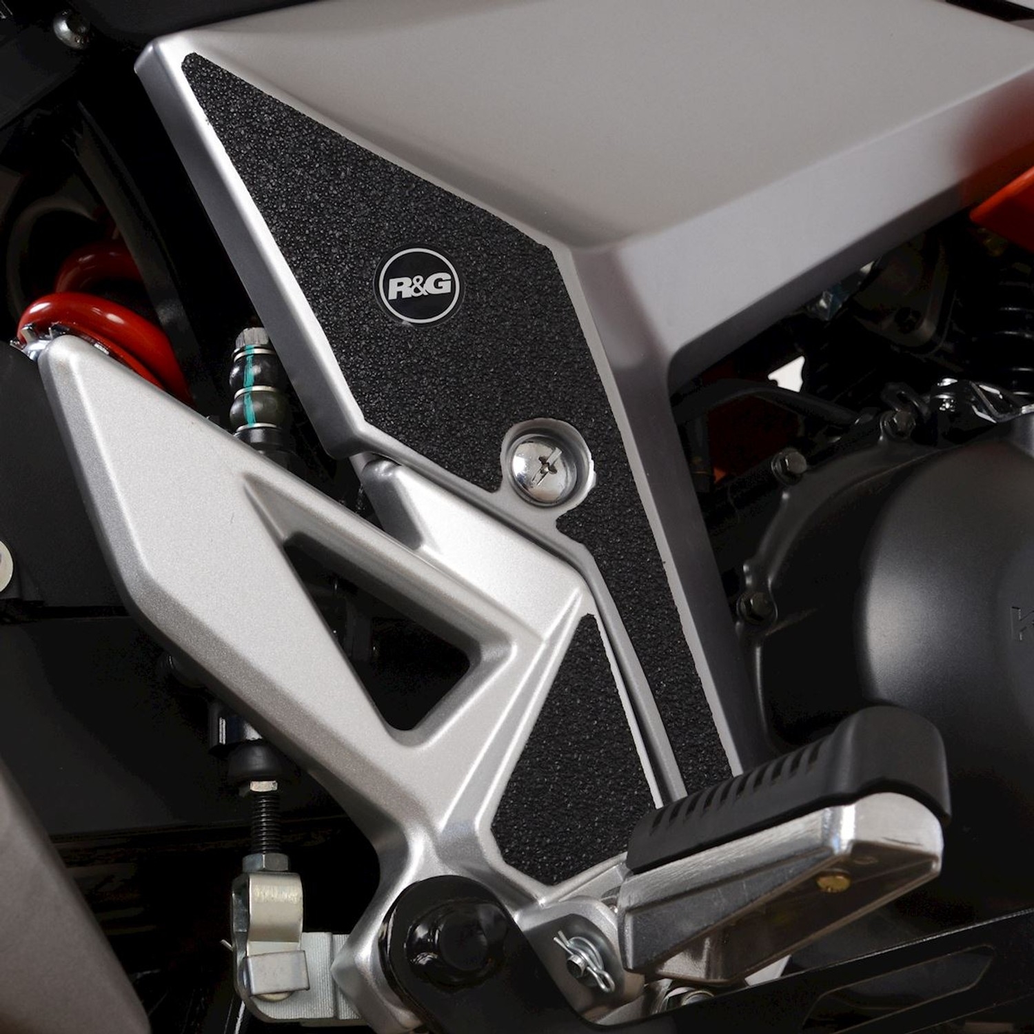 Estos kits de Guarda Botas RG están disponibles para una amplia variedad de estilos y marcas de motocicletas, con nuevas aplicaciones que se lanzan regularmente. Diseñados específicamente en el Reino Unido, estos protectores presentan una textura única de RG Racing que proporciona durabilidad y actúa como un amortiguador entre la bota y las áreas expuestas del basculante, que pueden entrar en contacto durante el manejo en curvas. Este contacto ocasional puede causar desgaste y daños no deseados tanto en el basculante como en las botas, reparaciones que suelen ser costosas.
