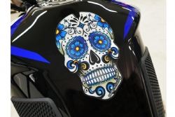 Adhesivo depósito Puig 3673A Skull Azul. Protector de deposito universal Puig 3673A diseñado para adaptarse a la mayoría de motos. Es ideal para prevenir con eficacia y durante mucho tiempo los roces del motorista produce en la pintura del depósito de la moto, incluso si se usa la moto a diario.