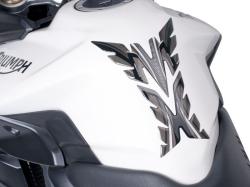 Producto de depósito universal diseñado por Puig. Los protectores de depósito Puig, a parte de dar un aspecto más tuning a su moto, ayudan a cuidar la parte trasera del depósito de posibles rayadas que a menudo ocurren a causa de la indumentaria del piloto.