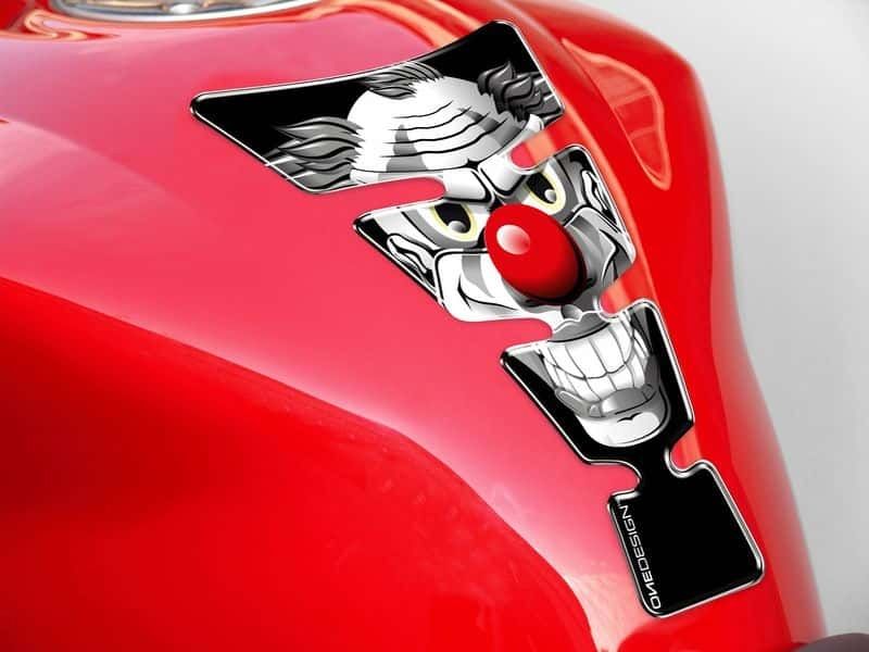 Adhesivo depósito Puig 9305U Clown. El protector de depósito Puig 9305U Clown ofrece una estética única y espectacular. El original diseño de los tres modelos disponibles (Clown Verde, Clown Plata y Clown Azul) es ideal para los motoristas que no les gustan lo convencional. Fabricado en material plástico flexible y de alta calidad para una alta durabilidad, incluso estacionado la moto a menudo en la calle. El protector de depósito Puig Clown es universal y se adapta a prácticamente la mayoría de motos del mercado.