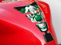 Adhesivo depósito Puig 9305V Clown. El protector de depósito Puig 9305V Clown ofrece una estética única y espectacular. El original diseño de los tres modelos disponibles (Clown Verde, Clown Plata y Clown Azul) es ideal para los motoristas que no les gustan lo convencional. Fabricado en material plástico flexible y de alta calidad para una alta durabilidad, incluso estacionado la moto a menudo en la calle. El protector de depósito Puig Clown es universal y se adapta a prácticamente la mayoría de motos del mercado.