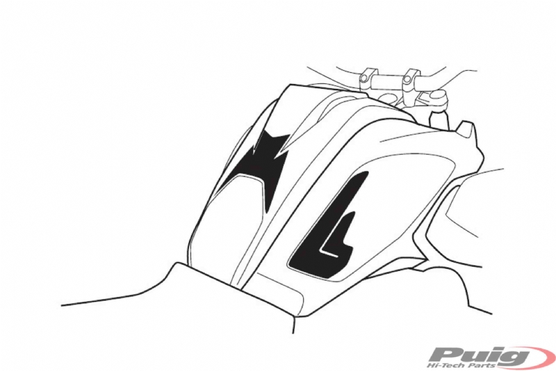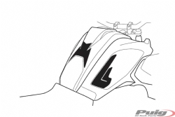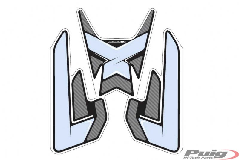 Adhesivo depósito Puig 9463C. Protector de depósito Puig 9463C diseñado específicamente para cada modelo de moto. El kit consta de tres elementos; 1 adhesivo protector frontal y 2 adhesivos protectores laterales que mejoran el agarre y el grip en las curvas. Fabricado en resina con zonas transparentes y detalles con símil carbono. Se sirve un folleto de instrucciones para facilitar su montaje.