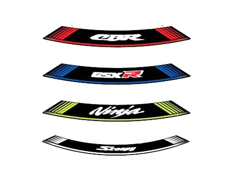 Juego de 8 tiras en arco disponibles en varios colores. Dale a tu moto un aspecto totalmente racing con estos innovadores adhesivos para las llantas.