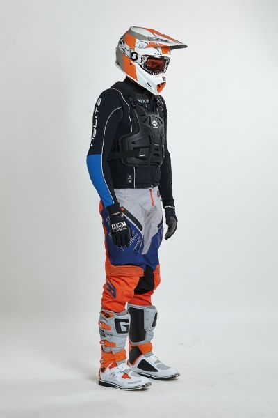 - Diseño ergonómico: un tejido técnico y transpirable, ultra resistente y elástico que se adaptará perfectamente a la morfología de los pilotos, incluso cuando el airbag está activado. También se distingue por su peso optimizado.