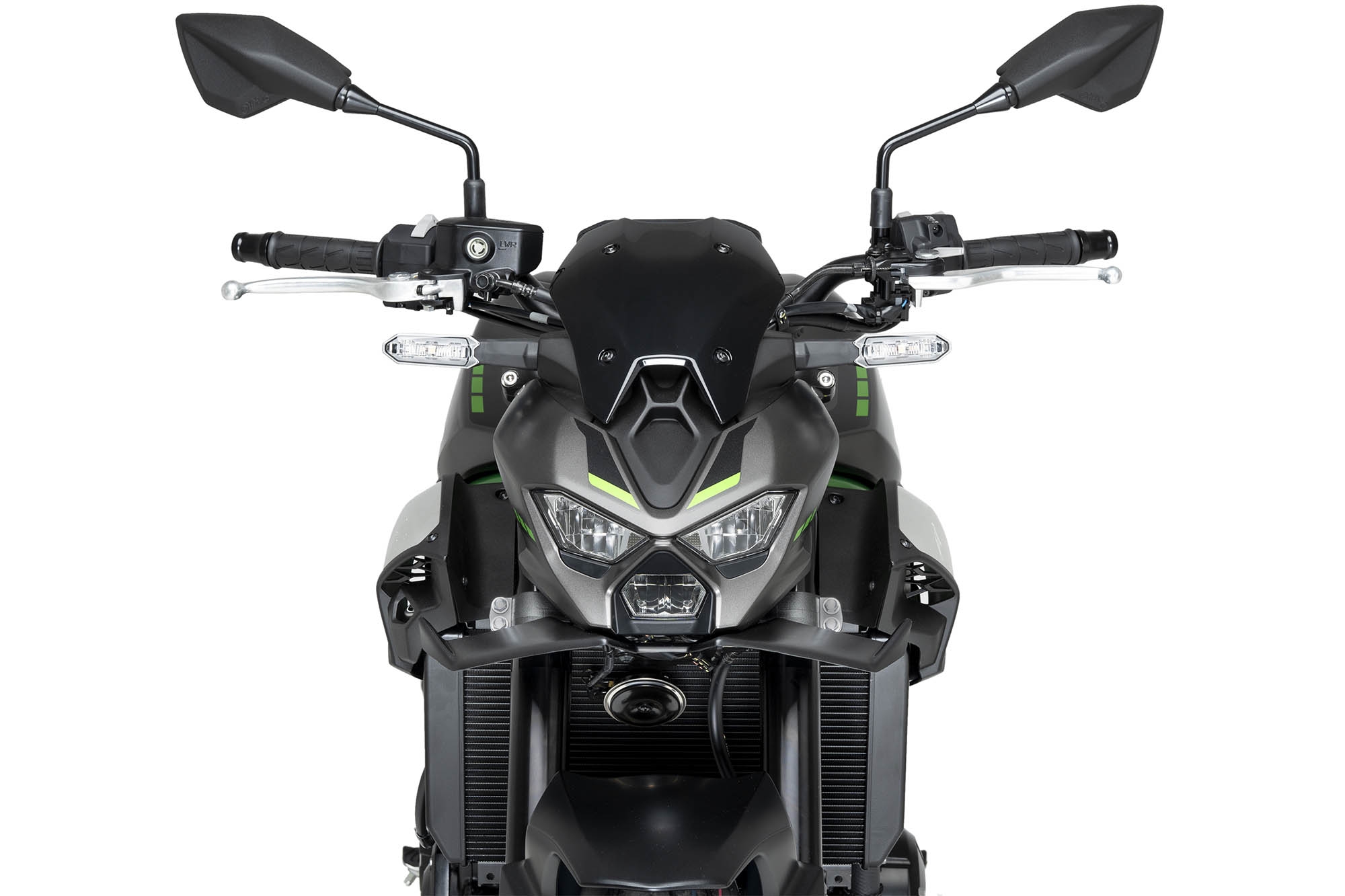 Disponible en negro brillante, negro mate y símil carbono, el alerón frontal Naked de Puig potencia la estética agresiva de la Z900 y aporta un acabado premium perfectamente integrado con el diseño original de la moto.