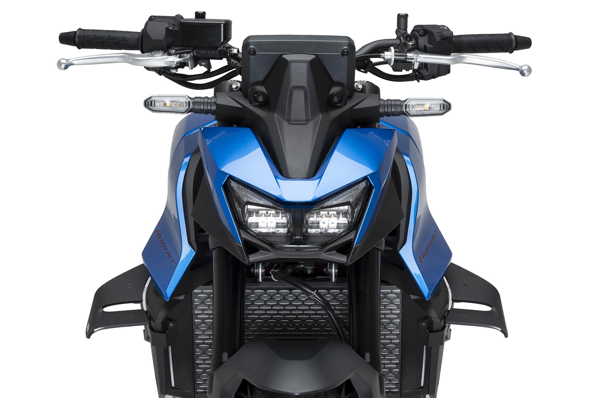 Los alerones Puig 22426 han sido diseñados y testados en túnel de viento, logrando un equilibrio óptimo entre rendimiento aerodinámico y estilo. Su estética agresiva refuerza el carácter deportivo de la Hornet, integrándose perfectamente en el frontal.