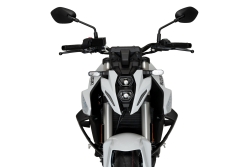 El diseño meticuloso de estos alerones incorpora soportes que crean un canal interno, optimizando el efecto downforce. Esta ingeniería aerodinámica genera una carga adicional en el eje delantero, canalizando la presión del aire para aumentar la estabilidad a altas velocidades, mitigar los shimmies y reforzar la adherencia de la rueda delantera durante las frenadas. El resultado es una mejora notable en la agilidad durante los cambios de dirección y una mayor seguridad en fuertes aceleraciones, gracias al efecto antiwheelie que evita que la rueda delantera se eleve.