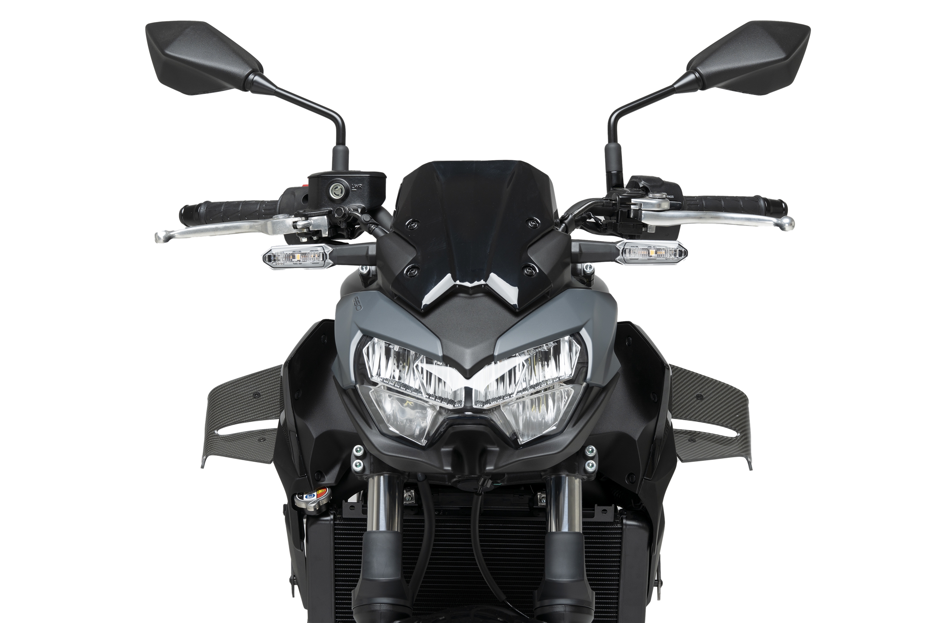 Características principales de los alerones D12 Puig 22472 para Kawasaki Z650 2020-2025