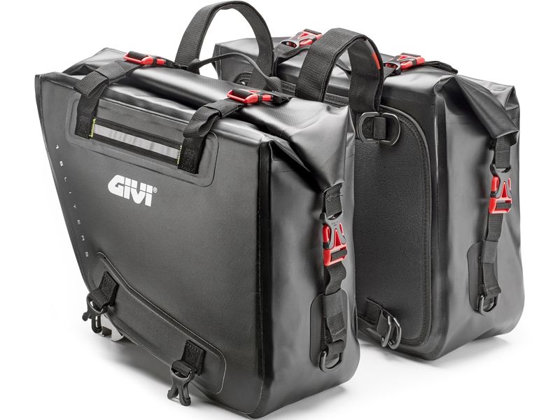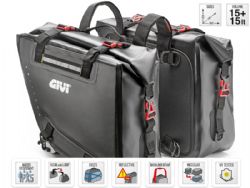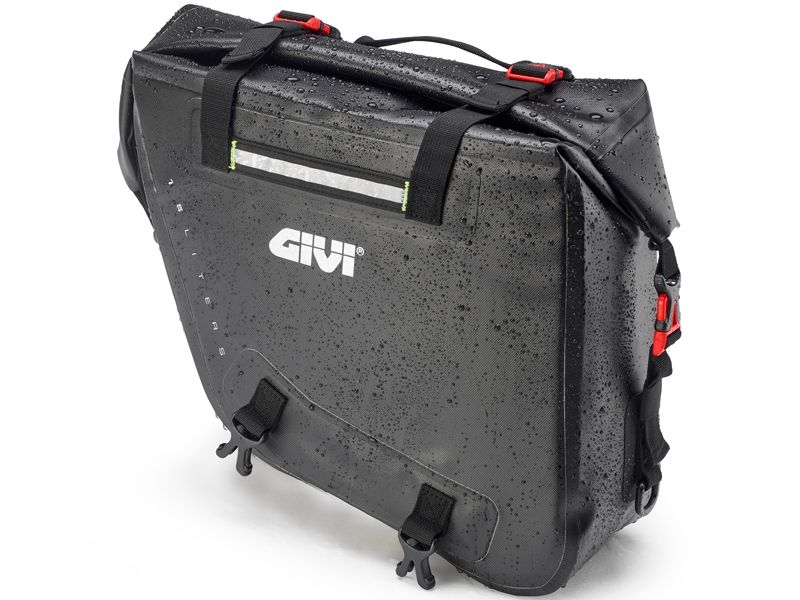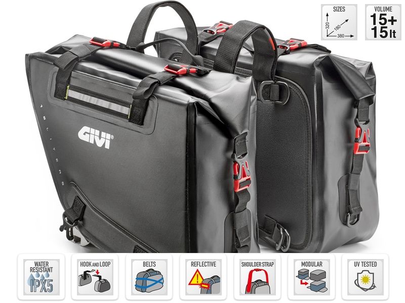 Alforjas Givi GRT718. Alforjas laterales universales Givi GRT718 de la línea Givi Gravel-T. Diseñadas especialmente para colocar sobre las motos enduro off-road. Estas alforjas estan fabricadas con materiales de alta calidad para soportar las exigencias del enduro y cuentan con la impermeablidad IPX5 para un almacenamiento de la carga seguro. Disponen 15 litros de capacidad (por alforjas) y detalles reflectantes para mayor visibilidad.