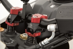 Alzas de manillar ajustables Gilles Tooling 2DGT-01-BR negro / rojo. Las torretas de manillar Gilles Tooling 2DGT aporta soluciones de ajuste revolucionarias y un estilo jamás antes visto. Estas alzas de manillar te permiten mover hacia arriba y hacia abajo, hacia adelante y hacia atrás, hasta encontrar la posición ideal para una conducción más confortable. Precio de la pareja. Las imágenes del producto son orientativas.