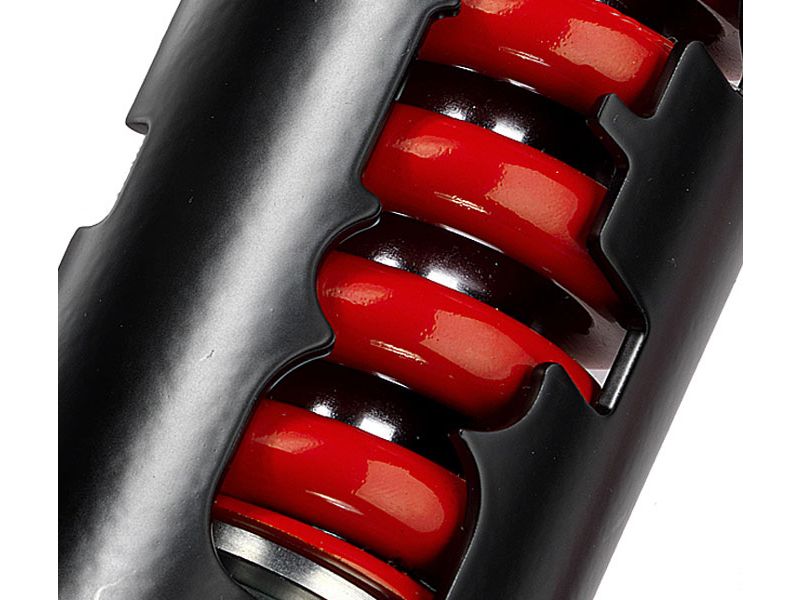 El cuerpo esta fabricado en acero especial con tratamiento antifricción de larga duración. El vástago interno a sido fabricado en acero reforzado con diámetro de 14 mm. Multiregulable en compresión en 24 clicks, extensión en 24 clicks, y regulación de la altura en 6 mm.