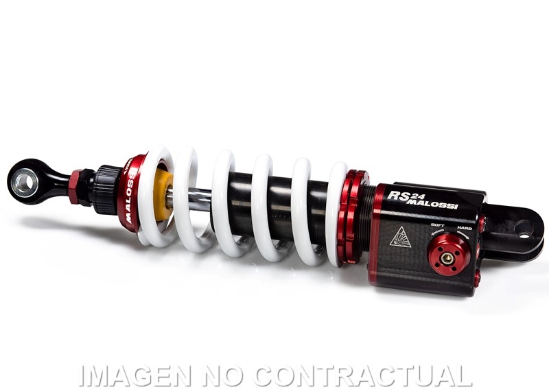 Amortiguador Malossi 4618360 RS24/10 Bmw C650 Sport. Suspensión tipo óleo neumática diseñada con la colaboración de los técnicos de Malossi y la prestigiosa fabrica italiana Paioli. Después de haber echo un estudio meticuloso por los técnicos de ambas empresas, han unido sus experiencias y conocimientos para crear esta nueva suspensión innovadora, superlativa, compacta y súper ligera. Totalmente variable en ajustes, con regulación del hidráulico en extensión, compensada con una cámara de nitrógeno presurizado, dotada de un sistema especial de regulación en la precarga del muelle patentado en condiciones de ofrecer un óptimo confort tanto en conducción turística como deportiva, con o sin pasajero a bordo. La versatilidad de esta suspensión se revela sorprendente gracias a los 3 sistemas de regulación inéditos, que ensalzan su utilización, tanto en la calle como en pista: Regulación del sistema hidráulico en extensión para absorber todas las irregularidades del terreno. Precarga del muelle para adaptar el vehículo en ajuste de marcha, según el peso de los pasajeros. Sistema de variación del ajuste para el comportamiento en curva, en caso que se haga un uso deportivo del vehículo.