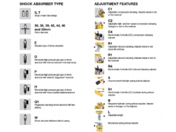 - R1: Ajuste hidráulico de la extension, con una ruedecilla giratoria en el pie del amortiguador.