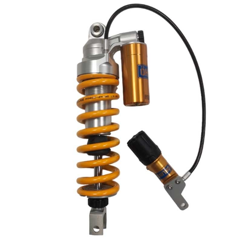 Este modelo pertenece a la familia Öhlins S46 y combina un cuerpo mono de 46 mm con depósito de gas externo, múltiples regulaciones y precarga hidráulica remota, lo que permite adaptar con precisión el comportamiento del tren trasero al terreno, al peso del piloto y al tipo de uso.
