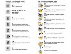 - R1: Ajuste hidráulico de la extension, con una ruedecilla giratoria en el pie del amortiguador.