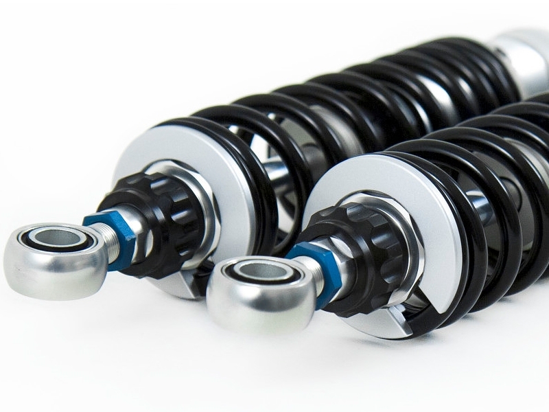 - D: Amortiguador hidráulico monotubo con sistema de gas a alta presión interno en el propio cuerpo.
