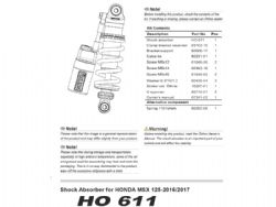 Amortiguador trasero Ohlins HO 611 S36HR1C1 Honda MSX 125 2016-18