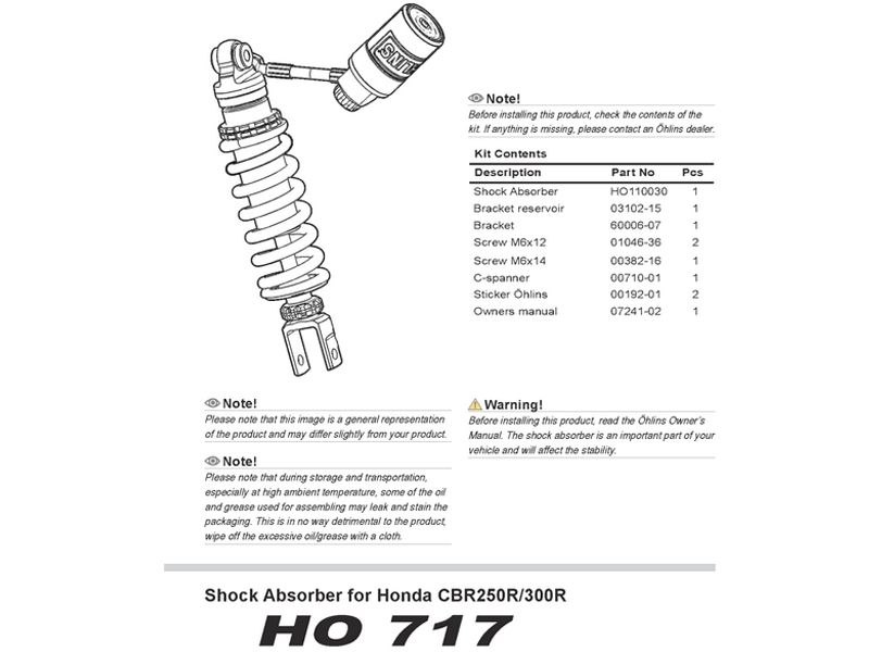 - HO 717 Motorcycle Honda CBR250R STX 36 Supersport Shock absorber 2014-2017.