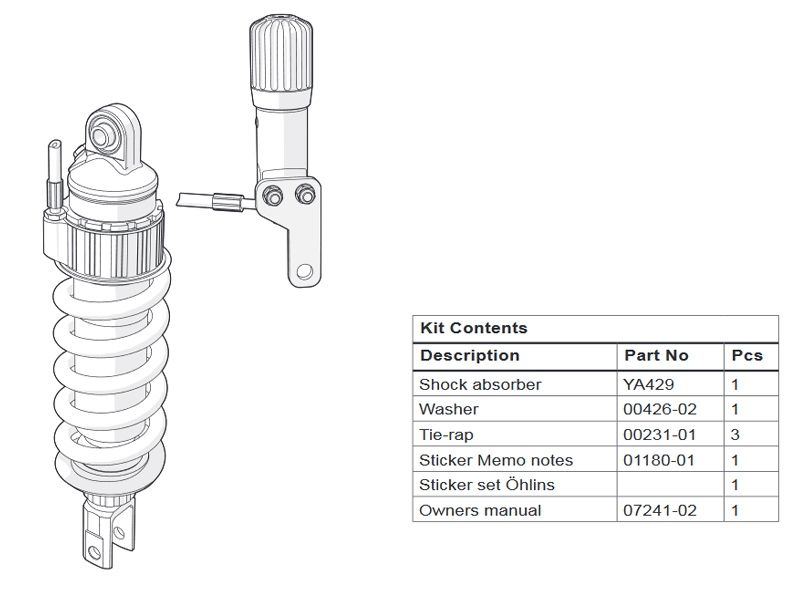 Se recomienda a la hora de elegir correctamente el amortiguador Ohlins, especificar en observaciones el peso del conductor sin equipo y si suele ir normalmente con acompañante o solo.