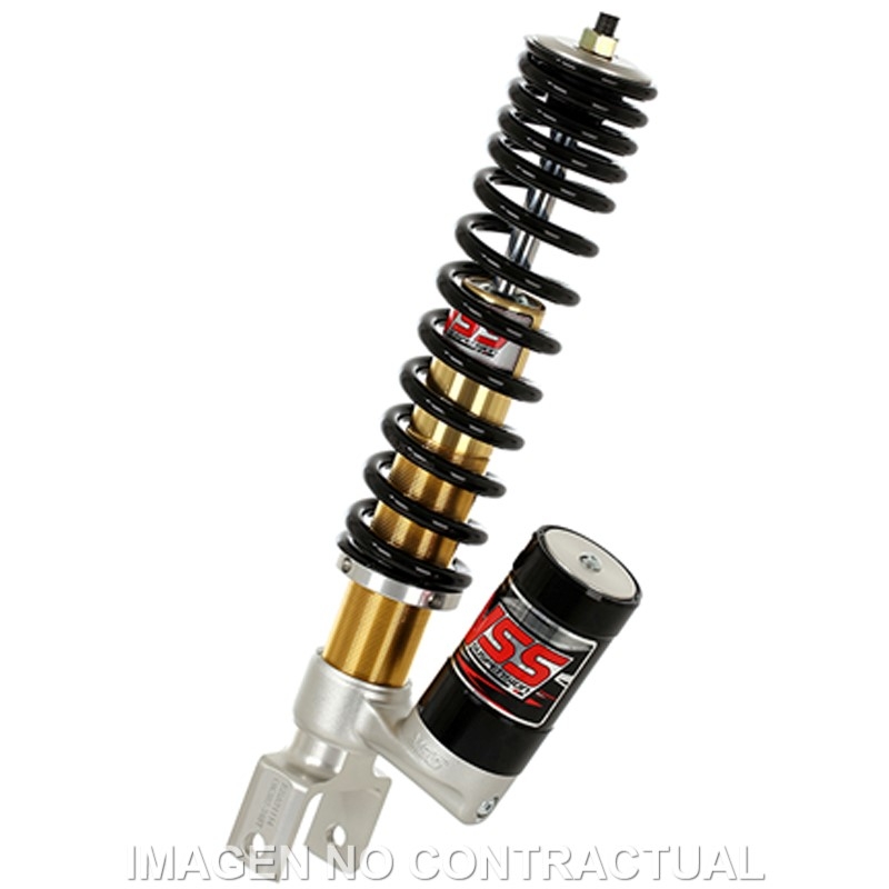 Amortiguador trasero YSS OK302-340T-01AL gas con botella Vespa PX 125. Amortiguador trasero de gas YSS OK302-340T-01AL específicamente fabricado para cada modelo de moto. Posee características técnicas deportivos con la más alta tecnología de YSS para ofrecer al motorista altos niveles de confort y prestaciones. La imagen mostrada es genérica y no representa el modelo compatible. El amortiguador se suministrará con el anclaje superior e inferior específico para el modelo de moto compatible.
