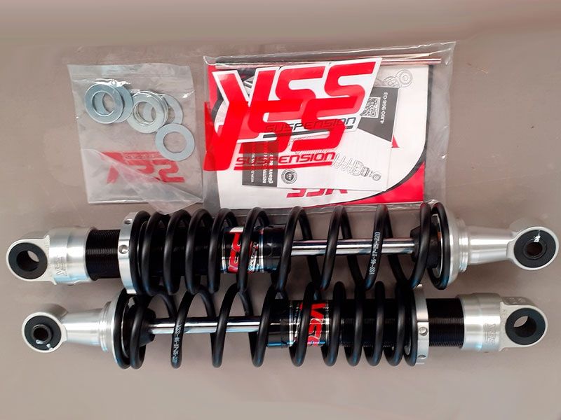 Amortiguadores traseros YSS RE302-350T-20 Eco Line Honda CB 500 S. Amortiguadores de gas YSS de la gama Eco Line con precarga de muelle ajustable. La gama YSS Eco Line ofrece un producto de excelente rendimiento con primer precio y que vale la pena probar. La primera imagen que se muestra corresponde al producto y representa el modelo compatible. Los amortiguadores se suministran con el anclaje superior e inferior específico para el modelo de moto compatible.