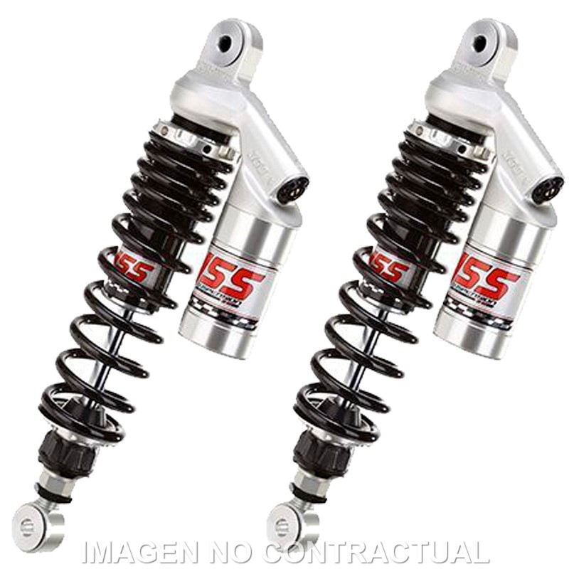 Amortiguadores traseros YSS RG362-300TRCL-18 gas con botella Kawasaki ER-5 97-00. Amortiguadores traseros de gas YSS RG362-300TRCL-18 específicamente fabricados para cada modelo de moto. Poseen características técnicas deportivas con la más alta tecnología de YSS para ofrecer al motorista altos niveles de confort y prestaciones. La imagen mostrada es genérica y no representa el modelo compatible. Los amortiguadores se suministran con el anclaje superior e inferior específico para el modelo de moto compatible.