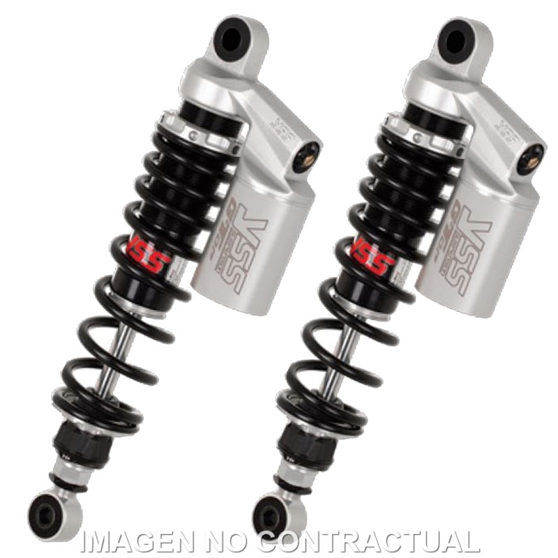 Amortiguadores traseros YSS RG362-330TRCL-11 gas con botella Honda CB400SF. Amortiguadores traseros de gas YSS RG362-330TRCL-11 específicamente fabricados para cada modelo de moto. Poseen características técnicas deportivas con la más alta tecnología de YSS para ofrecer al motorista altos niveles de confort y prestaciones. La imagen mostrada es genérica y no representa el modelo compatible. Los amortiguadores se suministran con el anclaje superior e inferior específico para el modelo de moto compatible.
