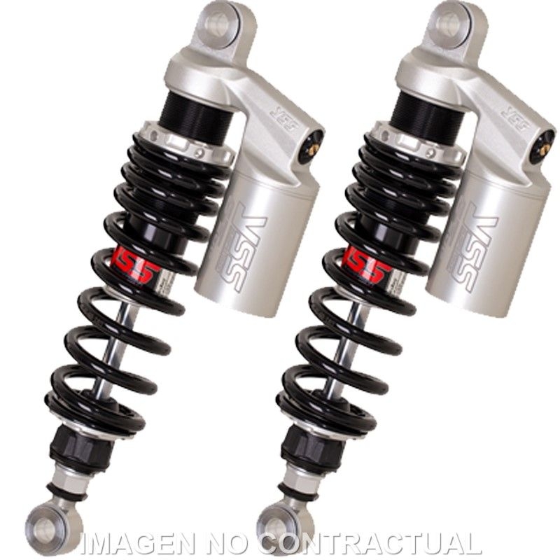 Amortiguadores traseros YSS RG362-350TRCL-11 gas con botella Kawasaki Z 400 J 1980-1983. Amortiguadores traseros de gas YSS RG362-350TRCL-11 específicamente fabricados para cada modelo de moto. Poseen características técnicas deportivas con la más alta tecnología de YSS para ofrecer al motorista altos niveles de confort y prestaciones. La imagen mostrada es genérica y no representa el modelo compatible. Los amortiguadores se suministran con el anclaje superior e inferior específico para el modelo de moto compatible.