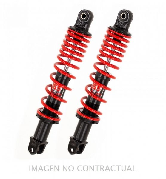 Amortiguadores traseros YSS TB220-335T-09-85 Gas DTG Yamaha N MAX 125 2015-2019. Amortiguadores YSS de la gama DTG con precarga de muelle ajustable manualmente y especialmente diseñados para scooters. Estos amortiguadores monotubo que ofrecen un precio económico pero al mismo tiempo garantizan un elevado rendimiento, siendo la opción perfecta para sustituir los amortiguadores de serie en caso de rotura. La imagen mostrada es genérica y no representa el modelo compatible. Los amortiguadores se suministran con el anclaje superior e inferior específico para el modelo de moto compatible.