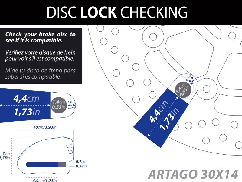 En Ramírez Moto te ofrecemos el antirrobo de disco Artago 30X14 con alarma con garantía de producto original y asesoramiento especializado.