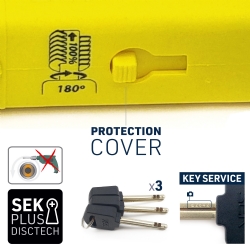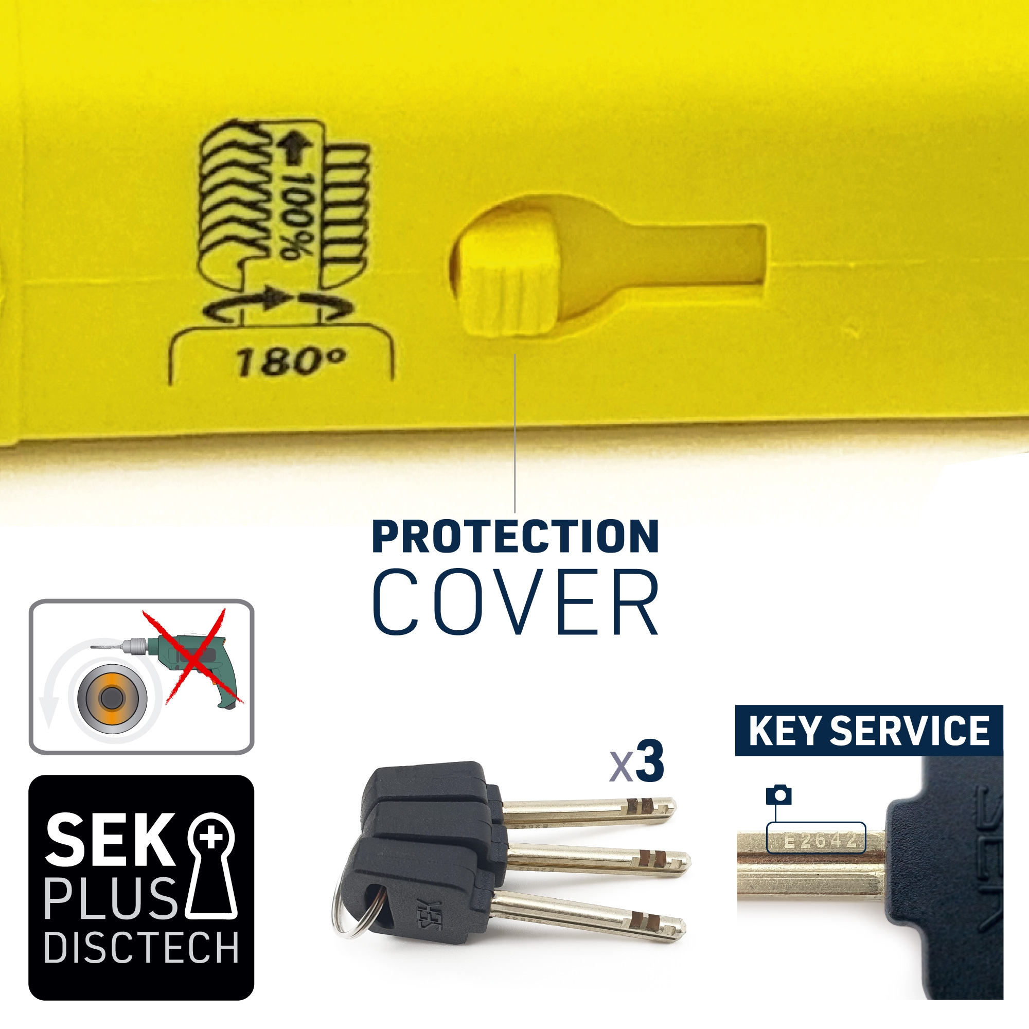 - Cilindro SEK PLUS DISCTECH con la más alta protección contra ataques con ganzúa, spray congelante y con disco anti-taladro de 2,5mm.