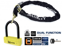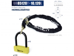 - Conjunto muy polivalente formado por una cadena tipo lazo y candado con forma de U (UR85120Y).
