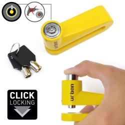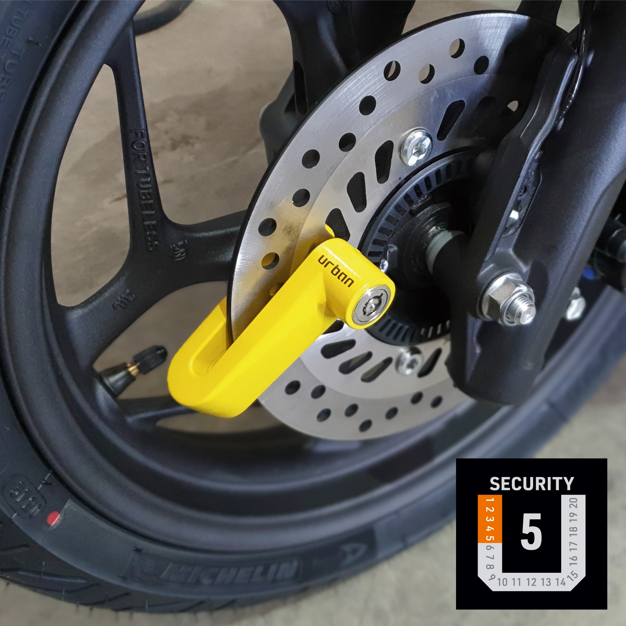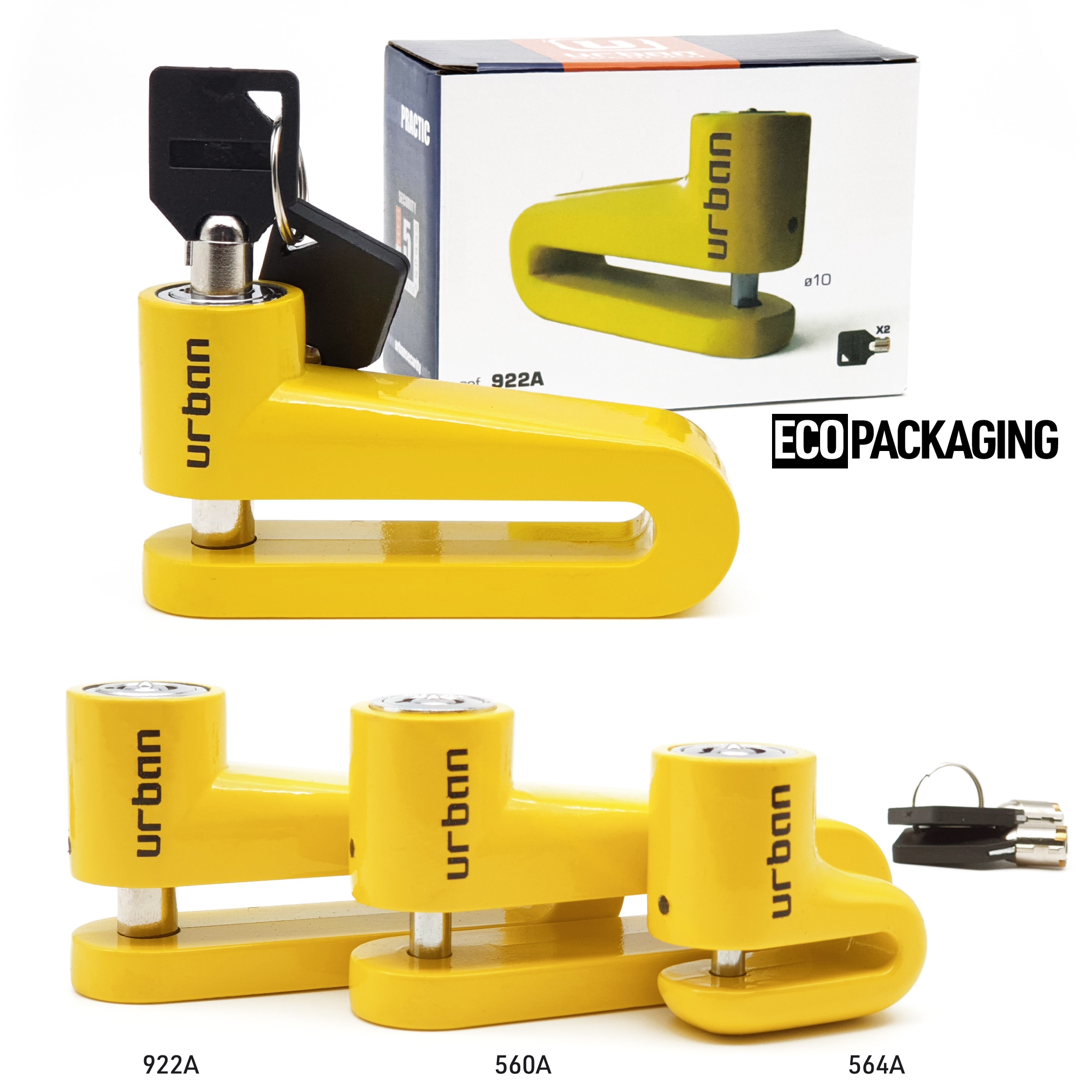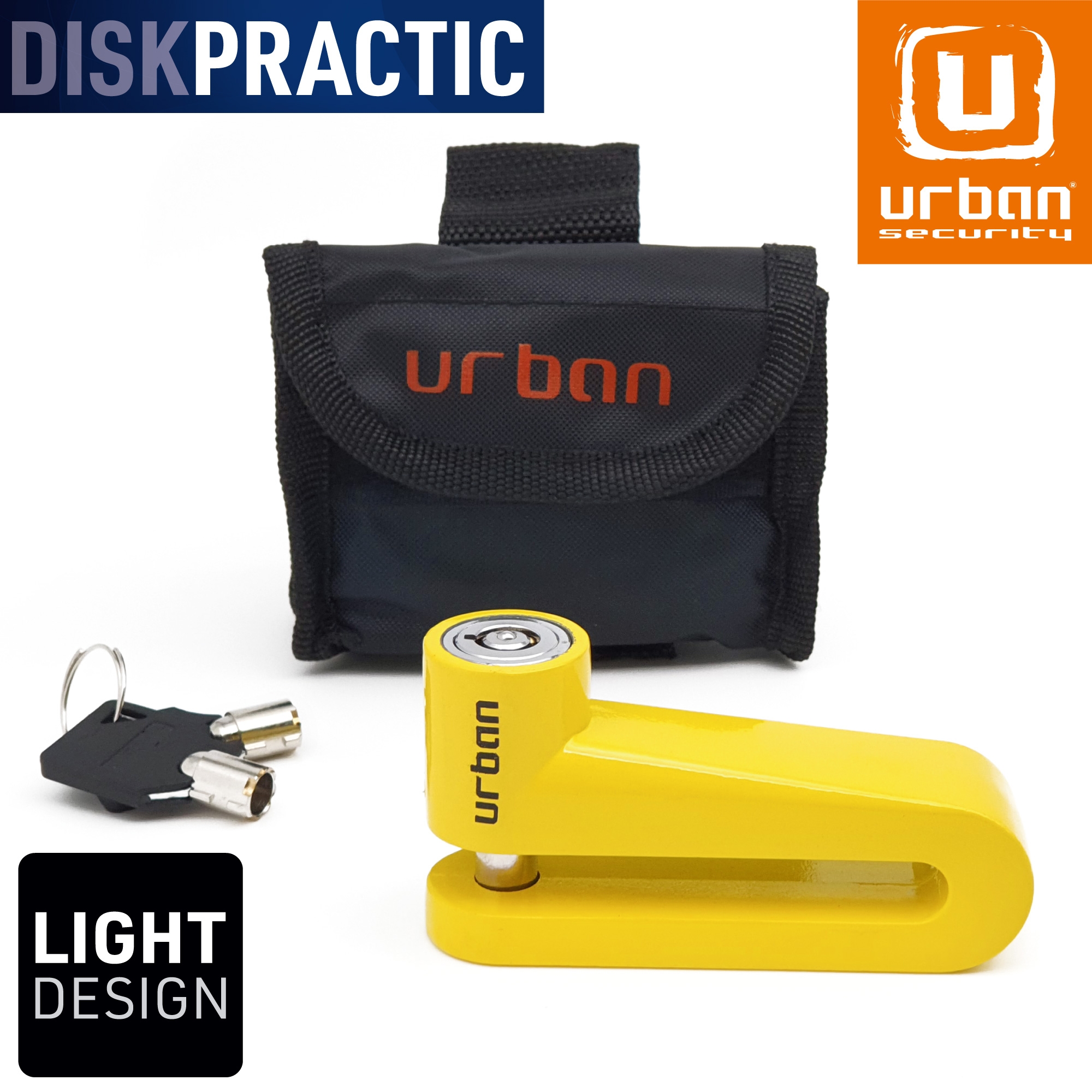 Antirrobo disco Urban Security 922A Practic. El antirrobo de disco para moto Urban Practic es un clásico de la calle, ya que cuenta con un precio económico, es práctico de usar y bastante ligero. Cuenta con el cuerpo principal 100% metálico y cerradura tubulares para una óptima calidad dentro de un precio reducido. Por sus medidas reducidas, el antirrobo de disco Urban Practic se adapta fácilmente a cualquier moto o scooter y está especialmente indicado para lugares con un riesgo de robo bajo. Disponible en 2 tamaños de eje de cierre; el Urban 922A con diámetro 10 y el Urban 560A con diámetro 7