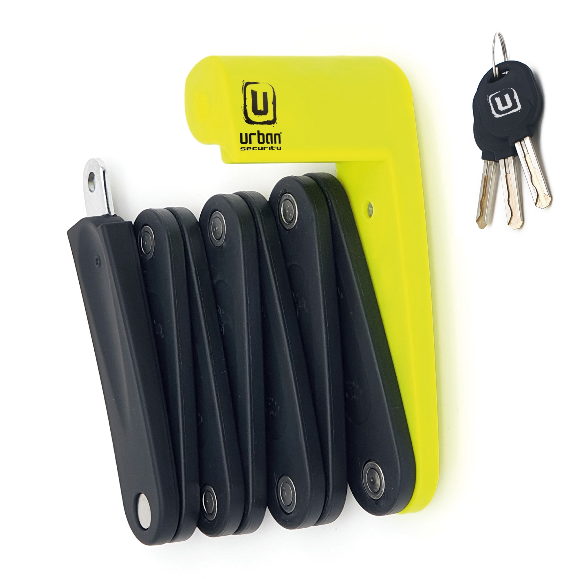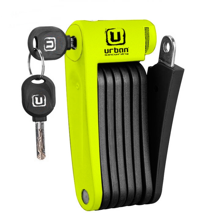 Antirrobo plegable Urban UR469Y. Antirrobo de bici Urban UR469Y7, compuesto por 7 piezas articulables de 6 mm de grosor y 10 cm de longitud cada una. Las piezas han sido unidas con remaches de acero inoxidable para una óptima resistencia. El Urban UR469Y es especialmente ligero y cómodo de transportar, ya que plegado ocupa muy poco espacio. Además incluye un accesorio de soporte para fijar a la bicicleta de forma práctica. Está dotado con una cerradura de seguridad con protección de cierre automático que protege del polvo.