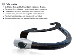 Antirrobo scooter Artago 749.1ART Practic Art. El antirrobo Artago 749.1ART Practic Art es el modelo más alto de la gama Practic. Este antirrobo se caracteriza por la gran seguridad que ofrece, pero sobre todo, por lo práctico y cómo que es de usar. La cerradura del Practic Art está considerada de máximo nivel y como la más segura de mercado. Esta cerradura es anti-ganzúa y dispone de un disco anti-taladro de 5 mm (obtiene los mejores resultados en los test comparativos y homologados NF-FFMC). El cuerpo de cierre giratorio y totalmente blindado, ofrece más seguridad además de ser más práctico. El cable está compuesto por acero blindado con casquillos y bolas también de acero. Su. La tapa de la cerradura es deslizante para evitar la entrada de suciedad o humedad. Incluye 2+1 llaves reversibles con sistema de click. Más información con lista de modelos en el PDF Adjunto. La imagen mostrada es genérica.