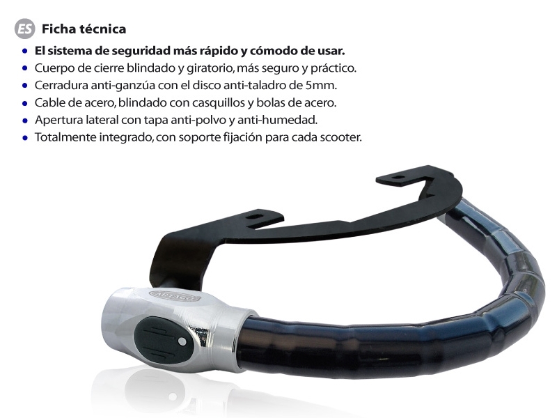 - Totalmente integrado con soporte fijación específico para cada scooter.