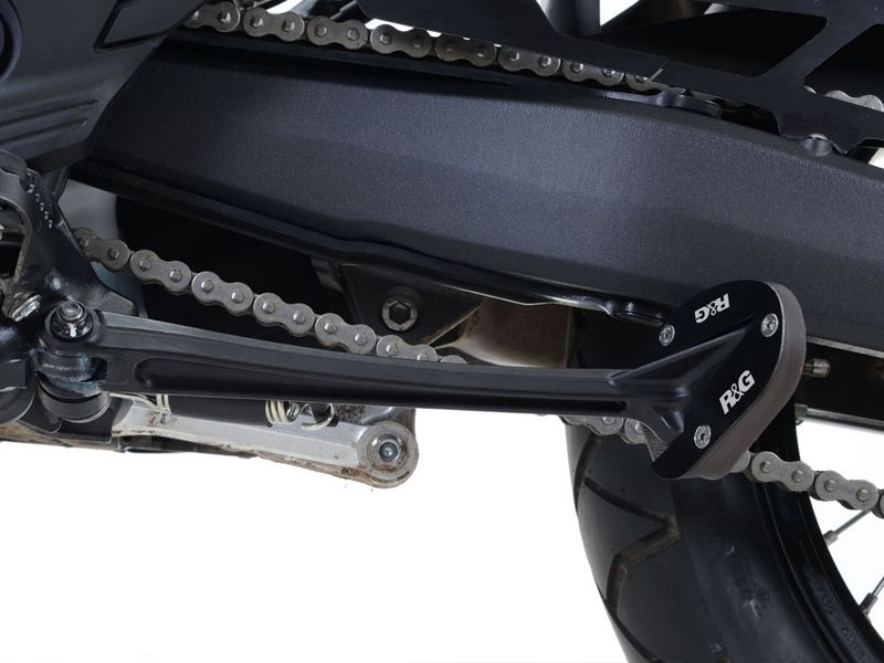 Base pata cabra Rg-racing PKS0087SI. Extensible caballete Rg-racing PKS0087SI realizado en aluminio combinado con acero inoxidable y específico para cada modelo de moto. El extensible para el caballete Rg-racing PKS0087SI permite ampliar la superficie de apoyo del caballete lateral original.