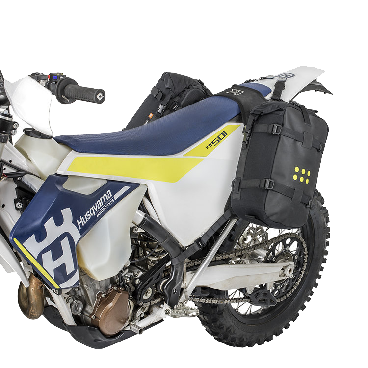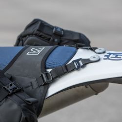 Soporte Kriega Overlander-S bolsas para Os KOSBA. El soporte de equipaje de moto Kriega Overlander-S OS-Base es la última incorporación a la gama Overlander-S. Un innovador sistema modular para alforjas que se adapta a prácticamente cualquier moto trail o enduro sin la necesidad de soportes para maletas metálicas. Fabricado en Hypalon de alta resistencia con núcleo de polipropileno semi rígido, se caracteriza por ser muy estable y ligero. Kriega Overlander-S OS-Base es un sistema de arnés que coloca sobre el sillín de la moto y permite que las bolsas OS-6, OS-12 u OS-18 se pueden utilizar como alforjas. El diseño modular permite cambiar la configuración de equipaje dependiendo de las necesidades de cada momento.